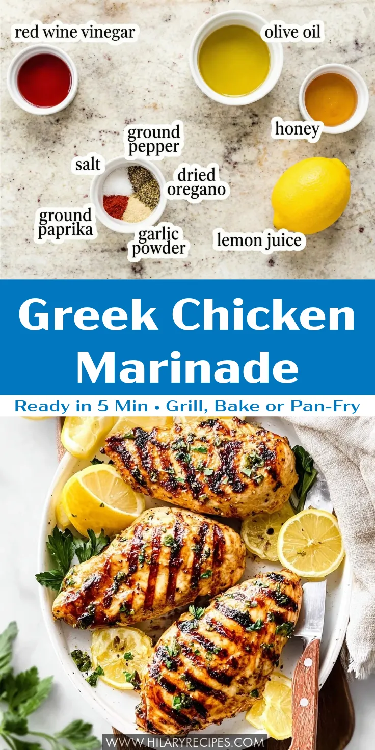 This Greek version hits all those notes perfectly. Plus, it’s a quick chicken marinade recipe you can whip up in 15 minutes or less!